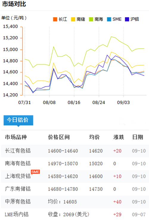 鋁錠價格今日鋁價2018-9-8