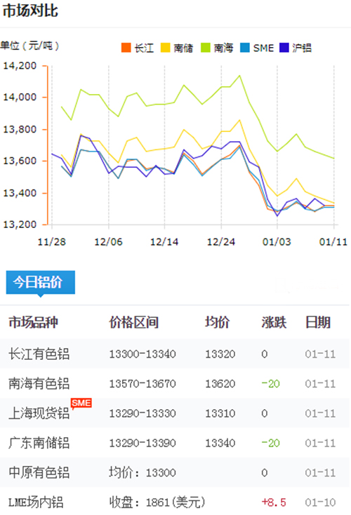 鋁錠價(jià)格今日鋁價(jià)2019-01-11
