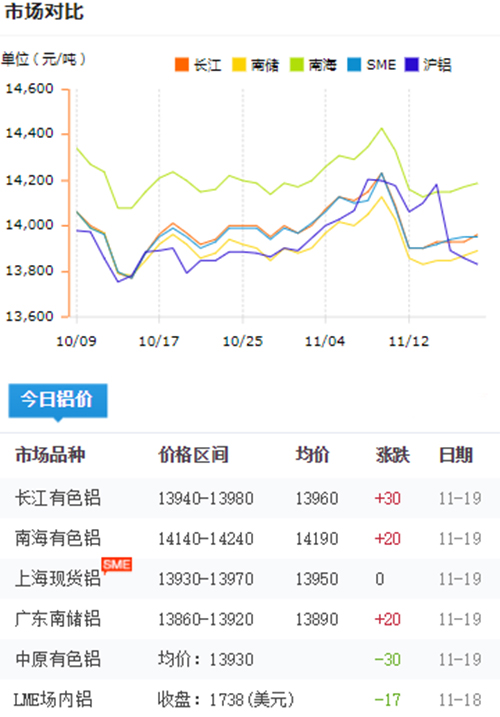 鋁錠價(jià)格今日鋁價(jià)2019-11-19