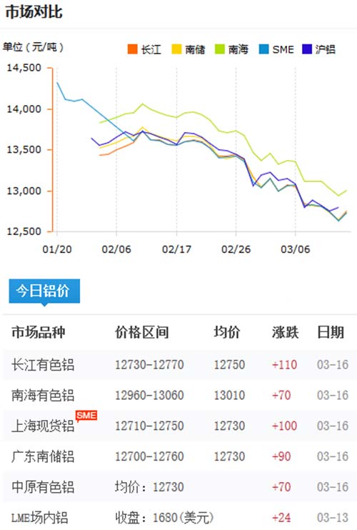 鋁錠價格今日鋁價2020-03-16