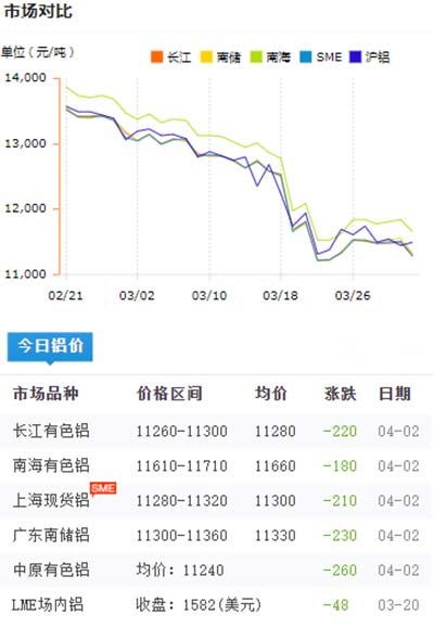 鋁錠價格今日鋁價2020-04-02