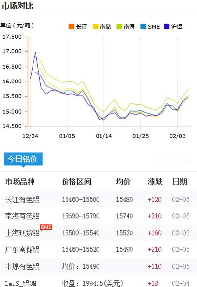 鋁錠價格今日鋁價2021-02-05