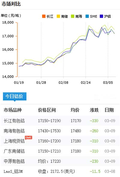 鋁錠價格今日鋁價2021-03-09