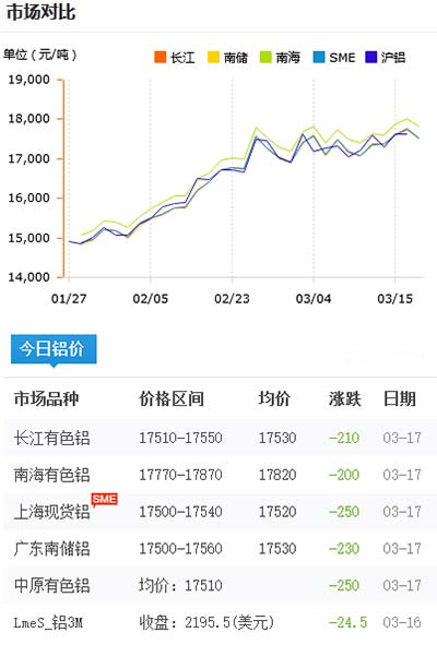 鋁錠價格今日鋁價2021-03-17