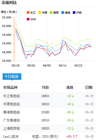 鋁錠價(jià)格今日鋁價(jià)2021-06-29