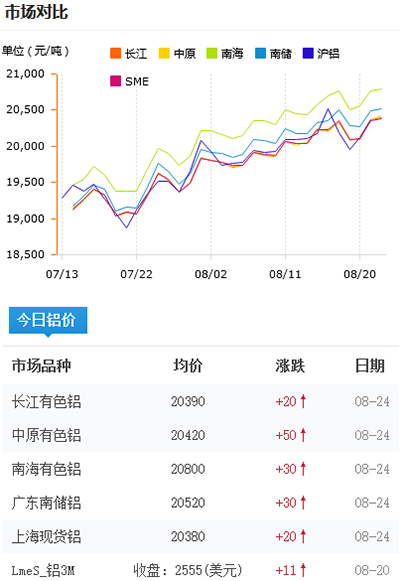 鋁錠價格今日鋁價2021-08-24