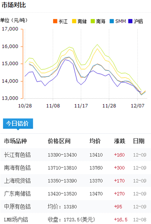 今日鋁價2016-12-9