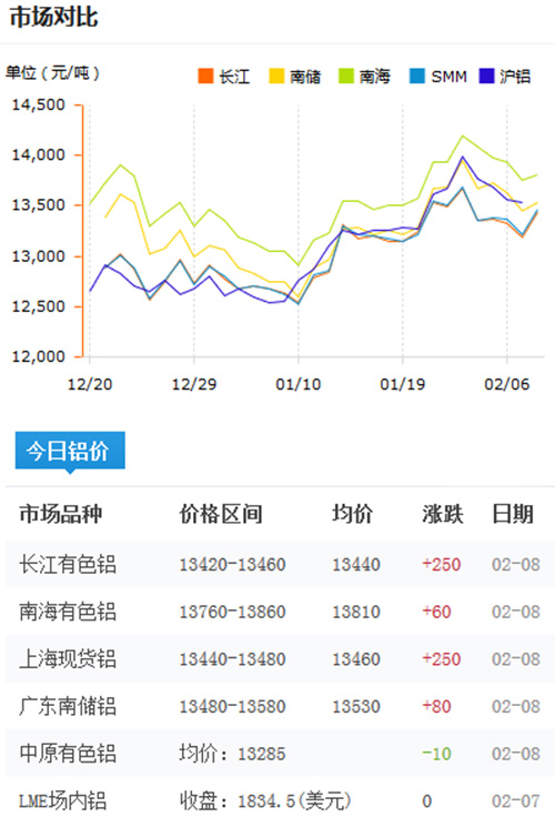 鋁錠價格今日鋁價2016-2-8