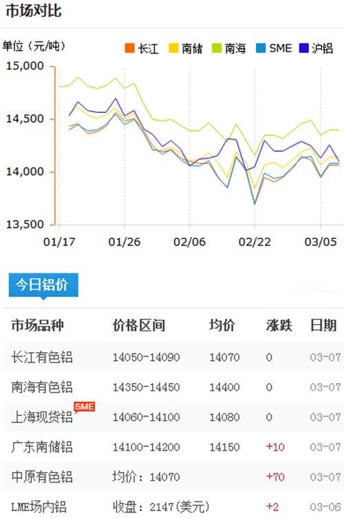 鋁錠價(jià)格今日鋁價(jià)2018-3-7