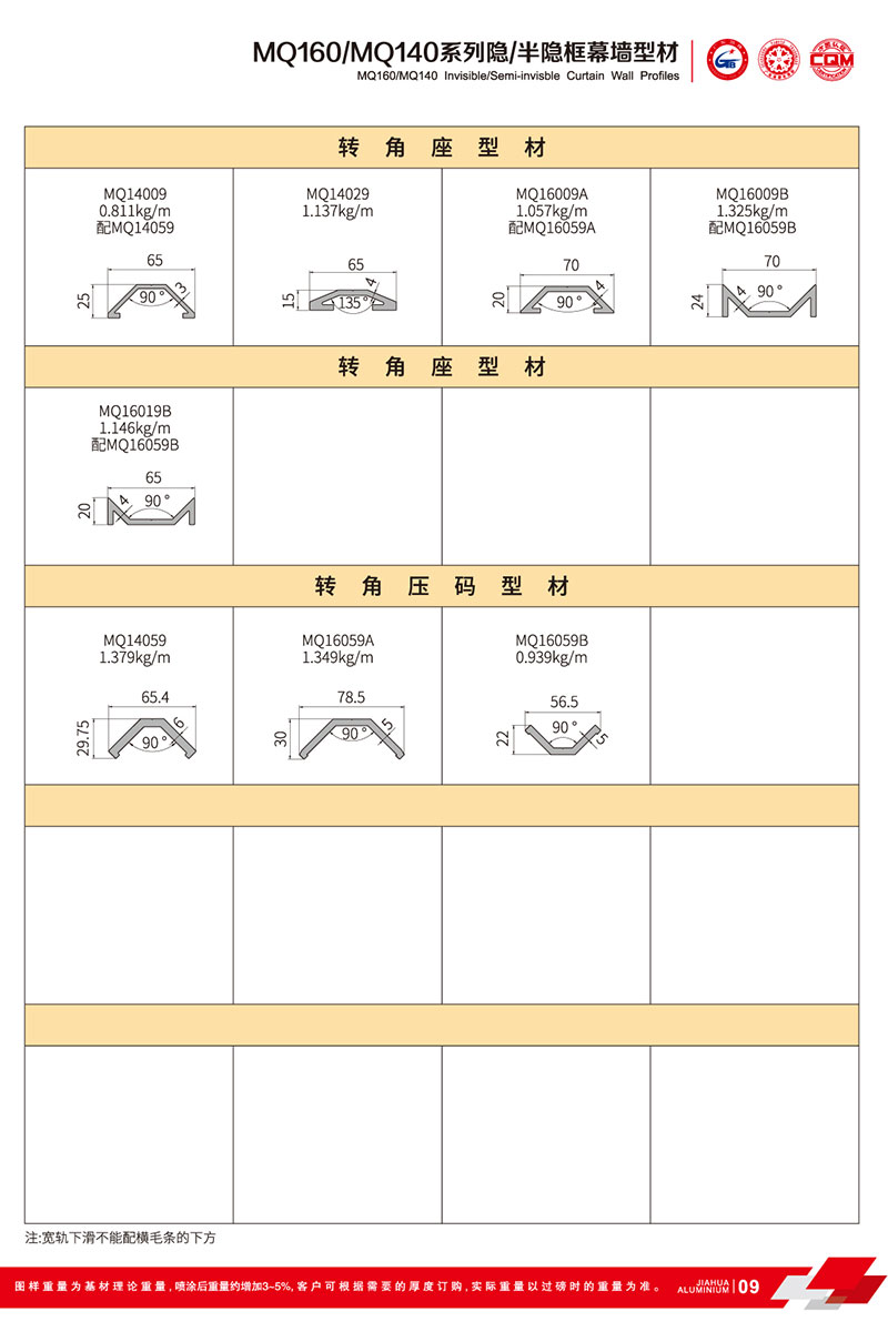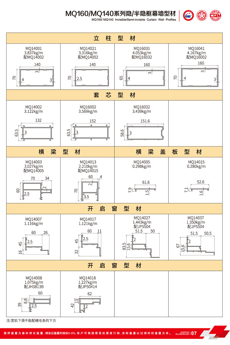 鋁型材規(guī)格型號(hào):MQ160/MQ140 A