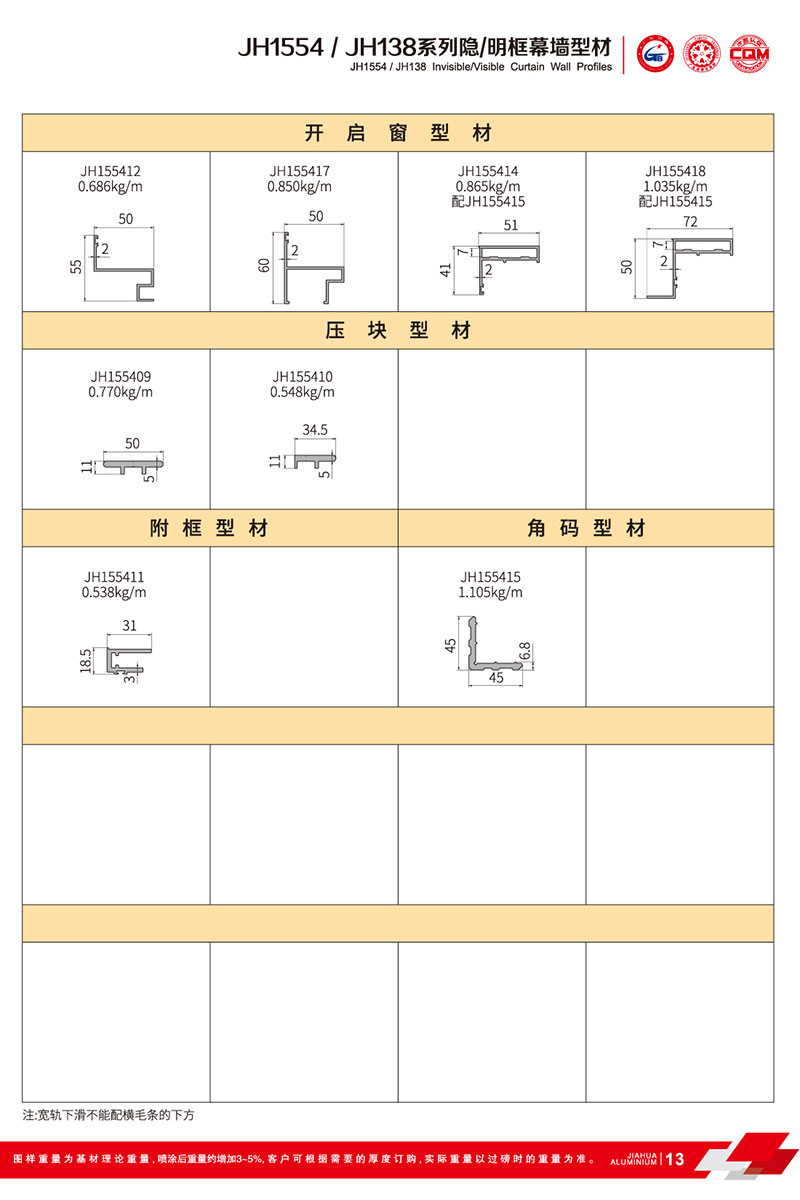 推拉窗系列 平開窗系列 平開門系列 斷橋隔熱系列 幕墻系列 通用型材系列