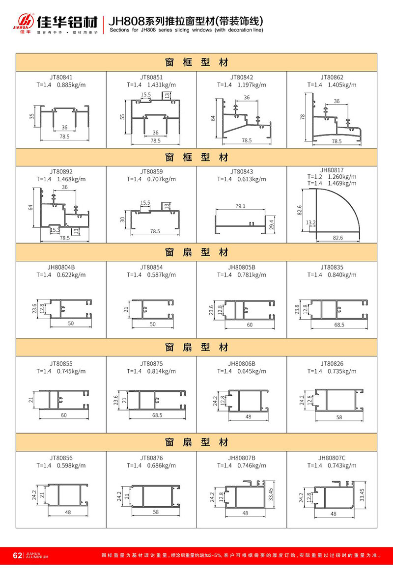 鋁型材規格型號:JH808